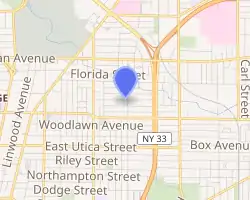 The fairgrounds property was originally a large block bounded by Northland Avenue (north); Humboldt Parkway (east); Ferry Street (south); Dupont Street, and Jefferson Avenue (west). The grounds included a horserace track and grandstand, and a bicycle track within the horserace track. The grounds were a few blocks northwest of the Buffalo Baseball Park.