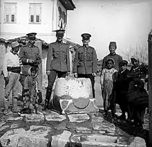 Captain Fabius established a volunteer artillery unit.[33] According to the Austrian government, the volunteers who bombarded the rebels were recruited by the Albanian Committee in Vienna.[34] Till the end of June 1914 Dutch officers were captured by rebels in most of the central Albania. They were gradually replaced with officers from Austria-Hungary and Germany, who arrived in Durrës on July 4.[1] On July 27, 1914 Colonel De Veer officially tendered the officers' resignations.[35] Soon the First World War broke out and by August 4 most of the officers had returned home. The rebels captured Berat on July 12 and Vlore, without fight, on August 21.[36] The last two captured officers (Verhulst and Reimers) were released on September 19, 1914.[37]