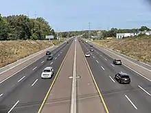 In 2007, the turnpike commission announced plans to widen the Northeast Extension to six lanes between Mid-County and Lansdale.[77] The project divided this stretch of highway into two sections. Work on the southern section began in January 2008 with the replacement of two bridges over the Northeast Extension to accommodate the widened highway. Construction on the actual widening phase commenced in January 2011. Completion was originally planned in 2013; however, construction fell a year behind schedule.[78][79] The southern section finished up in October 2014, while work on the northern section started in May 2014. By this point the project scope was expanded to include the Lansdale interchange itself, the roadway to a point one mile north of the interchange, and two new E-ZPass-only ramps at the Lansdale interchange to relieve congestion at the toll plaza. This new northbound exit ramp opened December 4, 2016, and the companion southbound on-ramp opened a week later.[80] Construction along the northern section was originally planned to finish by the end of 2016 but was delayed until mid-2017.[81] Construction was substantially completed, with all six lanes open, by August 31, 2017.[82]