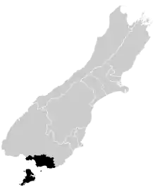 The electorate covers Invercargill city and the surrounding rural area, including Stewart Island / Rakiura. In 1996 a boundary redistribution resulted in the abolition of the Awarua electorate and merged with Invercargill following re-drawing of boundaries due to the introduction of mixed-member proportional voting (MMP). Minor but steady population decline in the Southland region has generally resulted in Invercargill expanding northwards. The 2013 redistribution, however, has left Invercargill unchanged.[1] The 2020 redistribution added a large area around Clifden and Tuatapere.[2]
