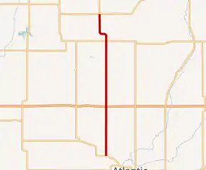 Iowa Highway 173 (Iowa 173) is a 14-mile-long (23 km) state highway in western Iowa. It begins at Iowa 83 northwest of Atlantic and ends at Iowa 44 in Kimballton. Iowa 173 connects Elk Horn and Kimballton, two small towns with tributes to their residents' Danish heritage. From its intersection with Interstate 80 (I-80) north to Iowa 44, Iowa 173 is designated as part of the Western Skies Scenic Byway. Designated in 1930, the highway was originally a spur route into Elk Horn from Kimballton. The route was lengthened to its current extent in 1980.