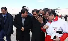 In response to the crash, crisis centres were set up in Tehran, Isfahan, Fars and Yasuj.[5] Weather conditions at the crash site, including snow and strong winds, were hampering search and rescue services.[3] The Red Crescent Society announced that a drone would be flown to the area due to the severe weather condition which prevented helicopters to reach the crash site. Search and rescue team announced on 19 February that at least 5 helicopters had been prepared for the search operation.[17] Troops with search dogs were deployed to hike the mountain and to search the area on foot. Search and rescue operation via air was stopped for the second time due to bad weather conditions.[18] Reports that the wreckage had been found at an elevation of 11,482 feet were refuted by officials from the Iranian Red Crescent and Iranian investigators.[19][20]