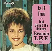 "Is It True" is a song released in 1964 by Brenda Lee. In 1964, Brenda Lee was flown by Decca to England to cut a single record, initially conceived for release exclusively in the United Kingdom, but it was in fact also released in the US shortly after release in the UK. "Is It True" was written by John Carter and Ken Lewis, then two of England's top songwriters.[1]