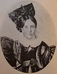 On May 30, 1812, fourteen society women of Buenos Aires met at the home of Tomasa de la Quintana, the wife of Antonio José de Escalada. The patrician women, who would become known as the "Sociedad Patriótica" (Patriotic Society) made donations equivalent to thirteen rifles and two ounces of gold so that, according to Bernardo de Monteagudo, they could say, "I armed this brave man who assured our freedom". The patricians requested that each of the rifles acquired with their contributions would bear the name of the donor.[5] In addition to Calvimontes, the women who subscribed by donating a rifle were, Tomasa de la Quintana, María de los Remedios de Escalada, María de las Nieves de Escalada, María de la Quintana, María Eugenia de Escalada de Demaría, Ramona Esquivel y Aldao, Mariquita Sánchez, Petrona Bernardina Cordero, Rufina de Orma, María de la Encarnación Andonaégui de Valdepares, Magdalena de Castro de Herrero y Ángela Castelli de Irgazábal, while the two ounces of gold was donated by Carmen de la Quintanilla de Alvear. On June 26, the First Triumvirate accepted the patrician donation, rendering "the most expressive thanks in the name of the country",[5] in the Gazeta de Buenos-Ayres.