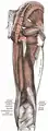 ![]() Capsule of hip-joint (distended). Posterior aspect. (Ischial tuberosity visible at bottom left.) | |