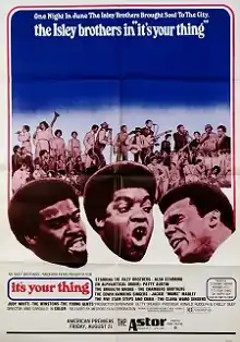 It's your Thing is an independently filmed 1970 concert film funded by the Isley Brothers. The film was directed by Mike Gargiulo and the production was supervised by Betty Sperber.[1]