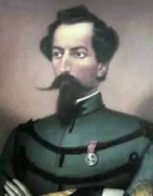 Poles were part of the International Legion formed by Giuseppe Garibaldi in 1860 during the Expedition of the Thousand, which paved the way for the creation of a united Kingdom of Italy in 1861. Its commander was Ludwik Mierosławski. Afterwards, Giuseppe Garibaldi, Ludwik Mierosławski and György Klapka decided in Paris that Italian and Hungarian revolutionaries would help in the event of a Polish uprising.[7] In 1861 with the consent of the Italian government the Polish Military School in Genoa was founded, which trained Polish officers in exile.[8] Moved to Cuneo in May 1862, it was closed in July 1862. The overwhelming majority of officers trained there took part in the Polish January Uprising in the Russian Partition of Poland in 1863–1864.[8]