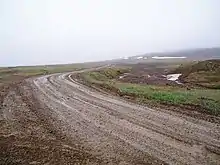 The central part of the district is quite mountainous. The northwest is drained by the Amguema River. This valley is a key resource for the part of the population that does not live by the sea and contains the only significant stretch of road in the district, running from Egvekinot, through the indigenous locality of Amguema, to the now defunct mining settlement of Iultin near the Arctic.[13] Other populated places in the district are only reachable either by sea or by helicopter.