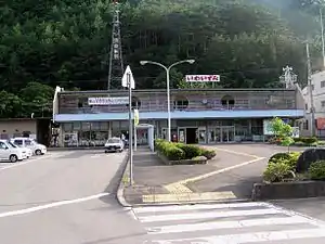 Iwaizumi Station was the terminus of the Iwaizumi Line, and was located 38.4 rail kilometers from the starting point of the line at Moichi Station.[1]