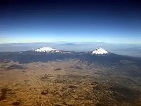 ![]() Aerial view of Iztaccíhuatl (left) and Popocatépetl | |