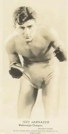 Isadoro Anthony "Izzy" Jannazzo (January 31, 1915 – June 18, 1995) was an American professional boxer who contended for the NYSAC, NBA, and The Ring magazine world welterweight championship against Barney Ross in November 1936, and took the Maryland version of the World Welterweight Championship in October 1940. In 1937, he fought national welterweight champions before large crowds in Australia and Germany. In 1940, he was listed as the world's top welterweight contender by some sources.[1] His managers were Guy Anselmi and Chris Dundee.[2][3]