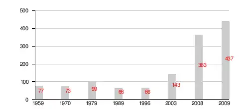 | Year | 1959 | 1970 | 1979 | 1989 | 1996 | 2003 | 2008 | 2009 |