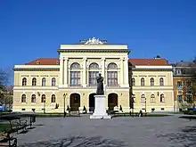 Koszta is also commemorated in Szentes in the names of a street and an elementary school.[3][4] In 1999, the city of Budapest held a memorial in his honor.[5] In 2005, the city of Szentes placed a Wreath of Remembrance on Koszta's grave,[6] but research later discovered that Kostza was interred elsewhere in an unmarked grave.[5] His remains were reinterred in state in 2008.