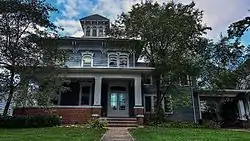 The J.J. Hoag House, also known as The Wheat House, is a historic residence located in Manchester, Iowa, United States. It received its nickname from its association to Hoag who was a grain dealer. The house is a well-preserved example of the mid-19th century Italianate style.[2] The two-story frame structure features a hipped roof capped with a belvedere, bracketed eaves, and ornate window hoods. The front porch and the porte-cochere were added around the turn of the 20th century. The house was listed on the National Register of Historic Places in 1976.[1]