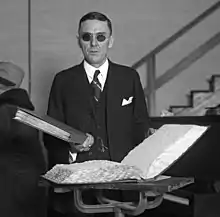 He began to learn forms of reading for the blind, including Braille, and later taught other blind people to read.[3] No longer able to live as before, Atkinson decided to resume his education, only to find that there was little published in Braille.[4] With family members dictating to him, he used a Braille typewriter to transcribe educational and other material, filling 16 volumes in Braille.[3][4] He received permission from the Christian Science Publishing Society to transcribe books by Mary Baker Eddy into Braille for his own personal use.[5]