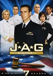 The seventh season of JAG premiered on CBS on September 25, 2001, and concluded on May 21, 2002. The season, starring David James Elliott and Catherine Bell, was produced by Belisarius Productions in association with Paramount Television.