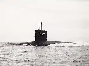 JDS Makishio (SS-567) was the second boat of the Uzushio-class submarines. She was commissioned on 2 February 1972.[1][2]