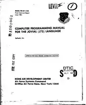 - Softech, Inc. (June 1981). Computer Programming Manual for the JOVIAL (J73) Language (PDF). Rome, New York: Rome Air Development Center. p. 12. Retrieved May 16, 2018.
