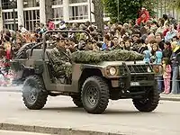 Batista's aim was to develop a utility vehicle to serve his mining company activities, as well as the Armed Forces and the general public.[1] Based on the Auverland A-3 used by the French Army, the company produced a car model, the JPX Montez, available in the SUV and pickup versions. The Montez was equipped with imported Peugeot's XUD-9A diesel engine and BA 7/5 gearbox, Carraro's axles and differentials. The body and chassis were made in Brazil.[3] JPX sales were lower than expected: the projection was of 400 units sold/month, but the demand was of 200 units/month;[1] most of them were issued to the army, park rangers and fire departments. Besides, the engines were not adapted to the diesel composition sold in the country and had overheating issues, due to a turbocompressor adapted to it.[3] On the other hand, the cars' suspension was praised by its owners.[4] The company's activities were terminated in 2002. JPX produced nearly three thousand units. Of these ones, roughly a thousand are still on the roads.[4]