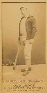 John Joseph Carney (November 10, 1866 – October 19, 1925), also known as Handsome Jack, was a professional baseball player in the late 19th century. He was born in Salem, Massachusetts, United States in 1866, and made his debut with the Washington Nationals on April 24, 1889. His last game, with the Milwaukee Brewers, was on October 4, 1891, and he died in 1925 in Litchfield, New Hampshire. In his three-year career, he also played with the Buffalo Bisons, the Cincinnati Kelly's Killers, and the Cleveland Infants, and his positions were first base and outfield. Carney's best performance was with the Infants in 1890, with whom he had a batting average of .348.