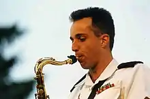 At age 25 (in 1989) Cooper was hired as a saxophonist and staff arranger for the United States Army Jazz Knights, a premier musical ensemble of the United States Armed Forces.[25] For 6 years he toured, performed, wrote for and recorded extensively with the West Point Band's musical group to include A&E television appearances at the Hatch Memorial Shell with the Boston Pops, jazz festivals across the Northeastern United States, backing entertainers and jazz artists.[24] He participated in the funeral of former President Richard M. Nixon in April 1994.[26]