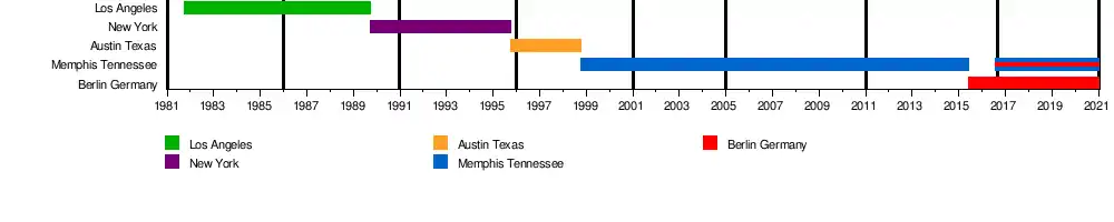 From June 2015 through August 2016 Cooper resided full-time in the Charlottenburg-Wilmersdorf borough of Berlin, Germany and continues to commute between the U.S. and Germany and makes his home in both Schöneberg, Berlin and Memphis, Tennessee. He serves as a staff arranger, musical director and production assistant for Marc Secara and the Berlin Jazz Orchestra for live performances and recording sessions.[52][53] He also assisted in arranging for the Collegium musicum Potsdam Symphony Orchestra and the Compass Big Band.[54][55][56] Cooper has conducted music and performed in venues such at the Wühlmäuse Theater, Heimathafen Neukölln and Kunstfabrik Schlot.[57] He also served as a Visiting professor and Artist-in-residence at the SRH Hochschule der populären Künste.[58] He has worked closely with German jazz, pop and Schlager personalities such as Marc Secara, Jiggs Whigham and Marc Marshall.[59][60][61][62]