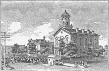 Established in 1817,[7] residents named the town after Andrew Jackson, a hero of the War of 1812, and an eventual president of the United States.[8] The community grew slowly, having only 297 inhabitants in 1840. In 1846, Jackson contained four churches, about seven stores, and a single newspaper office. Over the next 40 years, the town grew quickly, attaining a population of 3,021 people in 1880. By 1880, two railroad lines passed through the community, helping to spur economic and population growth. In 1886, two newspaper offices, eight churches, and two banks existed in Jackson. The largest businesses in the town were the Star Furnace Company and the Globe Iron Company, with 30 employees apiece. Both firms used local coal and iron ore deposits to make iron products.