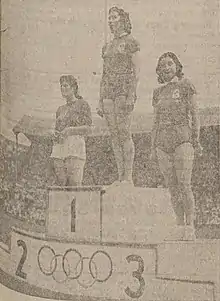 Mazeas on the podium at the 1948 Summer Olympics