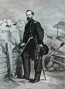 In September 1862, McPherson assumed a position on the staff of General Grant. He was promoted to major-general, dating from October 8, rising to that position primarily due to the influence of Halleck and Grant. Immediately after the siege of Vicksburg in which McPherson commanded the center, on Grant's recommendation McPherson was confirmed a brigadier general in the regular army, dating from August 1, 1863. Soon after this promotion, McPherson led a column of infantry into Mississippi and repulsed the enemy at Canton.[4]