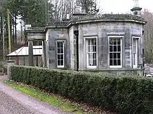 In the 1820s the Balfours employed the architect Robert Smirke, designer of the British Museum, to build a large classical mansion at Whittingehame,[1] along with a stable block and gate lodges.[15] They equipped their home with French furniture and Sèvres china.[1] Built of pale cullalo stone, the house was expanded and altered in 1827 to the designs of William Burn, which were not entirely successful. Colin McWilliam and Christopher Wilson describe them as having changed "a dry composition into a boring one".[15]