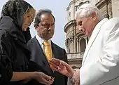 In 2002, on behalf of the U.S. State Department, Carville, and his wife, political consultant Mary Matalin, met with a group of 55 Arab women political leaders during the 2002 United States midterm elections. The programming, "Women as Political Leaders" International Visitor (IV) Program, was the first program implemented under the auspices of the Middle East Partnership Initiative, a collection of 40 programs headed by then deputy assistant secretary for Near East Affairs Liz Cheney.[79] In addition to events with Carville and Matalin, the group met with congressional, state and local campaign staff, and observed campaign work during their visits to Concord, New Hampshire, Dallas, Texas, Detroit, Michigan, Toledo, Ohio, Raleigh, North Carolina, and Tallahassee and Tampa, Florida.[80]