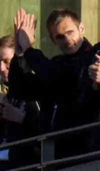 ![]() Hanson with the victory parade that followed Bradford City's victory in the 2013 Football League Two play-off Final | |||