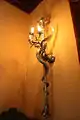 The interior features an art gallery that housed Hill's collection of painting and sculpture. It even had a pipe organ, installed after someone suggested to Hill that other wealthy people had pipe organs in their homes. The house had a hybrid system of gas and electric lighting, with rotary switches on the walls to turn on the electric lights. However, there were no electrical outlets installed, because during that era electricity was only used for lighting. The woodwork in the house is very intricate, with hand-carved woodworking in the central hallway, the formal dining room, and the music room. Other rooms in the house, particularly on the second floor where most of the family members lived, do not have hand carved woodwork, but the woodwork is still richly colored and nicely detailed.