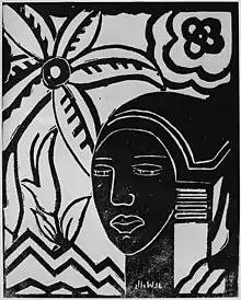 Early in his career, Wells was primarily a graphic artist. He worked with block printing, lithography and etching. He created graphic illustrations for books, journals, and other publications, including the illustrations for a poetry collection of Marianne Moore and history periodicals of the Association for the Study of Afro-American Life and History.[3] In 1929, Wells was hired as a crafts instructor at Howard University in Washington D.C. He taught block printing, ceramics, clay modeling and sculpture. Two years later, Well convinced the University's College of Fine Arts to offer classes in linoleum printmaking. Wells was known for his inventive and modern printmaking.[4] He was an influential teacher and mentor to young artists during his career, including prominent sculptor Elizabeth Catlett and accomplished printmaker Stephanie Pogue.[5][6]