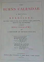 - McKie, James (1874). Burns Calendar. James McKie. p. Burns Calendar.