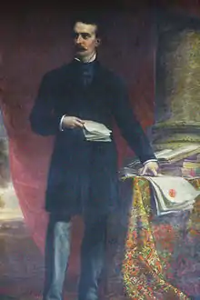 On January 29, 1880, the James Prendergast Library Association of Jamestown, New York, was established by special act of the New York State Legislature. The act was signed into law by Gov. Alonzo B. Cornell.[15] The library first opened on December 1, 1891, at a cost of $60,000 for the building and $45,000 for a furnished art gallery. The initial collection comprised 7,555 works under the care of Samuel G. Love.[16][17]
