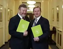 James Reilly (born 16 August 1955) is an Irish former Fine Gael politician, businessman and medical doctor.[1] Between the February 2016 general election and the 6 May 2016 formation of a new government, he was the Acting Minister for Children and Youth Affairs, having held that ministry since July 2014 in the previous government, and was also deputy leader of Fine Gael from 2010 to 2017.[2] He was the Minister for Health from March 2011 to July 2014. Reilly was a Teachta Dála (TD) for the Dublin North constituency since the 2007 general election until he lost his seat in the 2016 general election.[3] Reilly was a member of Seanad Éireann from May 2016 to March 2020, after being nominated by then Taoiseach, Enda Kenny.[4] Reilly subsequently announced his retirement from politics after he lost his bid for election for his old seat at the 2020 general election.