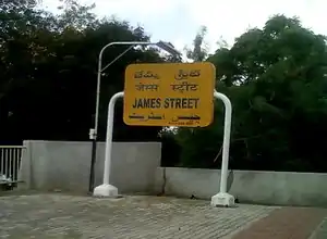James Street railway station is a railway station in Secunderabad. The station was built in 1874 and was the second station after Secunderabad station on the Hyderabad–Wadi sector by Nizam State Railways.[2] The station derives it name from erstwhile James Street located adjacent to this station. This street after independence was later renamed as Mahatma Gandhi Road. Other localities such as Rani Gunj and the Hussain Sagar lake are accessible from this station.