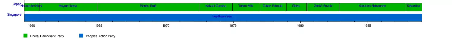 Japan–Singapore relations or Singapore–Japan relations (Japanese: 日本とシンガポールの関係 Nihon to Shingapōru no kankei) refers to the bilateral relations between Japan and Singapore, two highly developed Asian countries which share historical, economic, and political ties. While the two countries first established bilateral relations in 1966, some of the earliest relations date back from before the 15th century during the Muromachi period as well as the Ryukyu Kingdom.[1] This continued for centuries until the most notable interaction with Japan's invasion of Singapore during World War II. The invasion led to a takeover of the country, after which Japan occupied Singapore for approximately four years before withdrawing following their loss in the war.