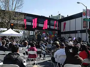 The Japan Center is a shopping center in the Japantown neighborhood of San Francisco, California. It opened in March 1968 and was originally called the Japanese Cultural and Trade Center.[1] It is bounded by Geary (on the south), Post (on the north), Fillmore (on the west), and Laguna (on the east). The mall itself is composed of three mall buildings; from west to east, they are the Kinokuniya Mall, Kintetsu Mall (now Japan Center West), and Miyako Mall (now Japan Center East). Anchor tenants include Books Kinokuniya and Sundance Kabuki Cinema.[2]