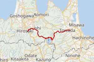 National Route 102 was originally designated on 18 May 1953 as route connecting Hirosaki to Hachinohe.[2] On 1 April 1963, the route was truncated to its current route. The section between Towada and Hachinohe was incorporated into Route 45.[3]