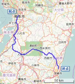 National Route 219 is a national highway of Japan connecting Chūō-ku, Kumamoto and Miyazaki, Miyazaki in Japan, with a total length of 207.4 km (128.87 mi).