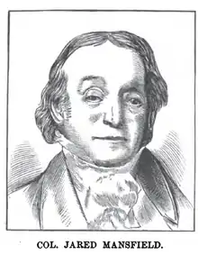 Jared Mansfield (May 23, 1759 – February 3, 1830) was an American teacher, mathematician and surveyor. His career was shaped by two interventions by President Thomas Jefferson. In 1801 Jefferson appointed Mansfield as Professor at the newly founded United States Military Academy at West Point. Again at Jefferson's appointment, Mansfield served as the Surveyor General of the United States from 1803 to 1812, charged with extending the survey of United States land in the Northwest Territory.