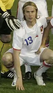 He started all three of the Czechs' group games at the 2006 FIFA World Cup in Germany, their first since partition, where they were eliminated at the expense of eventual champions Italy.[18] Plašil played 13 times in qualification for UEFA Euro 2008, scoring to cap a 3–0 win over Germany in the Allianz Arena on 17 October 2007 that qualified his team to the finals in Austria and Switzerland; it was Joachim Löw's first defeat as national manager.[19] In the final tournament, Plašil started each game in Group A and scored to put the Czechs 2–0 up against Turkey in the last game, which they eventually lost 3–2 to be eliminated.[20]
