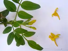 Jasminum humile, the Italian jasmine[1] or yellow jasmine, is a species of flowering plant in the family Oleaceae, native to Afghanistan, Tajikistan, Pakistan, Nepal, Burma (Myanmar), the Himalayas and south west China (Gansu, Guizhou, Sichuan, Xizang (Tibet), Yunnan). The species is widely cultivated and reportedly naturalized in Greece, Sicily and the former Yugoslavia.[2][3]