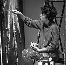 In high school DeFeo acquired the nickname “Jay,” which she used as her common name for the rest of her life. An important early mentor was her high school art teacher, Lena Emery, who took her to museums to see works by Picasso and Matisse, opening up a new world to the young artist.[4] DeFeo enrolled in the University of California, Berkeley, in 1946, studying with many well-known art professors, including Margaret Peterson O’Hagan. Fellow students included Pat Adams, Sam Francis, and Fred Martin.[5][6]