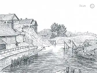 Менск. Абрыў Замкавай гары і прыбярэжная грэбля на правым беразе ракі Свіслач (Minsk, near Castle Hill and the Śvisłač river), 1920