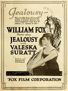 Jealousy is a 1916 American silent drama film written and directed by Will S. Davis. The film starred Valeska Suratt in another popular vamp role.[1] The film is now considered lost.[2]
