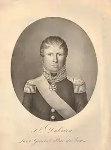 Jean-Louis Dubreton (18 January 1773 – 27 May 1855) enlisted in the French army in 1790 and served during the French Revolutionary Wars where he gained advancement. During the War of the First Coalition he fought against the allies in the north and against the War in the Vendée. By 1801 he commanded a battalion in Italy. The year 1803 found him leading a regiment during the failed French occupation of Santo Domingo.