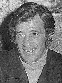 Jean-Paul Charles Belmondo (French pronunciation: [ʒɑ̃pɔl ʃaʁl bɛlmɔ̃do]; 9 April 1933 – 6 September 2021) was a French actor, initially associated with the New Wave of the 1960s and a major French film star for several decades from the 1960s. His best known credits include Breathless (1960), That Man from Rio (1964), Pierrot le Fou (1965), Borsalino (1970), and The Professional (1981). He was most notable for portraying police officers in action thriller films and became known for his unwillingness to appear in English-language films, despite being heavily courted by Hollywood.[1][2] Undisputed box-office champion like Louis de Funès and Alain Delon at the same time, Belmondo attracted nearly 160 million spectators in his 50-year career. Between 1969 and 1982, he played four times in the most popular films of the year in France: The Brain (1969), Fear Over the City (1975), Animal (1977), Ace of Aces (1982), being surpassed on this point only by Louis de Funès.[3]